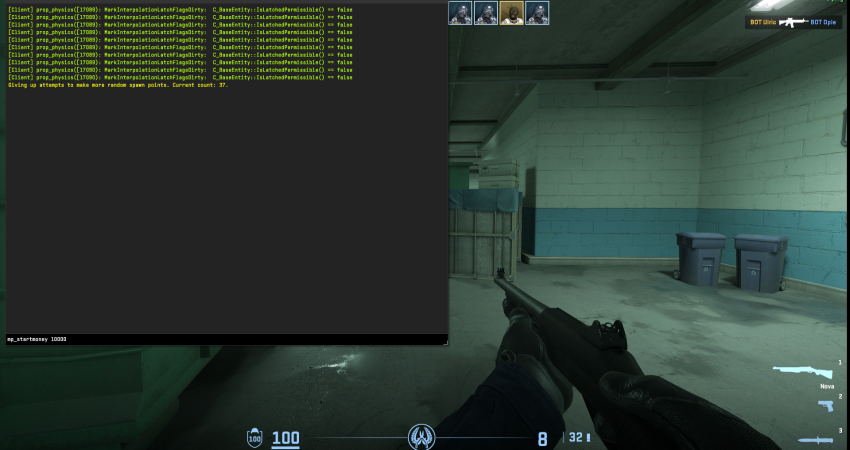 - Start Money: Enter mp_startmoney 10000 to ensure you start the match with the maximum funds.