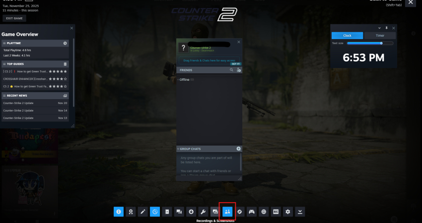 - Open Overlay: Press Shift + Tab to bring up the Steam Overlay.
