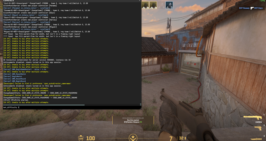 - Enable Cheats: Open the console and type sv_cheats 1 and press Enter. This unlocks all necessary bot manipulation commands.